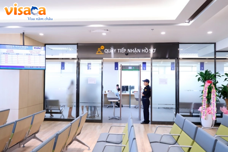 Đến ngày hẹn, bạn mang toàn bộ hồ sơ gốc và bản sao đến Trung tâm tiếp nhận thị thực (VFS Global). Tại đây, nhân viên sẽ thu hồ sơ và lấy dữ liệu sinh trắc học (chụp hình, lấy vân tay).
